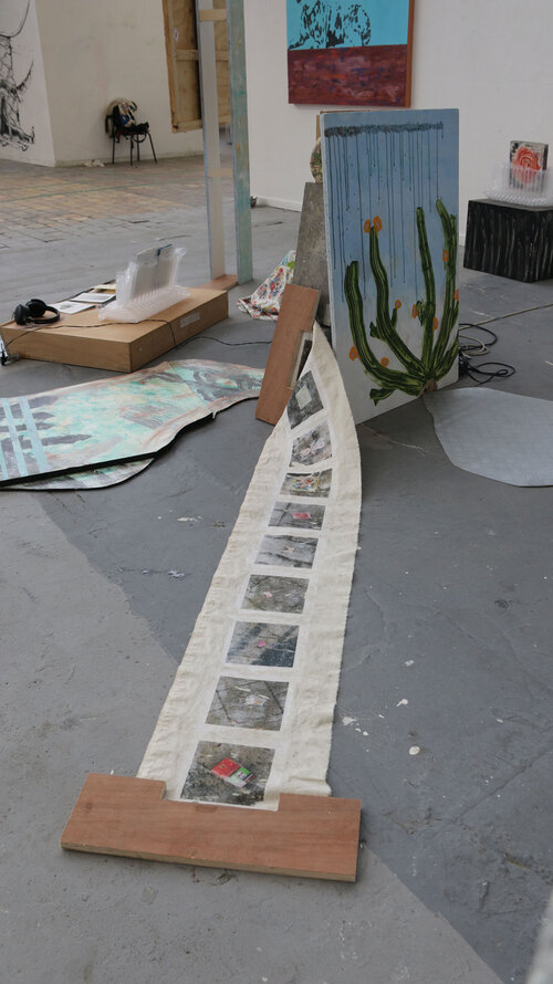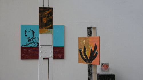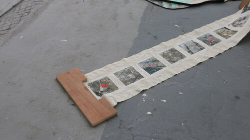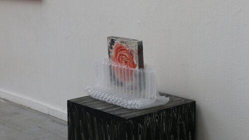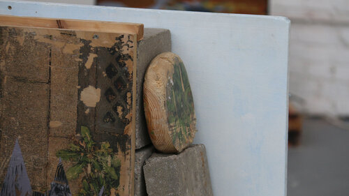 Cette installation explore la mémoire des objets abandonnés et la temporalité de l’espace urbain. Les supports, collectés dans l’espace urbain, conservent les traces de leur usage, de l’usure et du passage du temps. Par la peinture, ils deviennent les témoins de nos quotidiens romantisés et poétiques. Des fragments de ville rendus à une forme de présence. L’ensemble évoque la circulation entre perte et redécouverte, entre disparition et réapparition.
